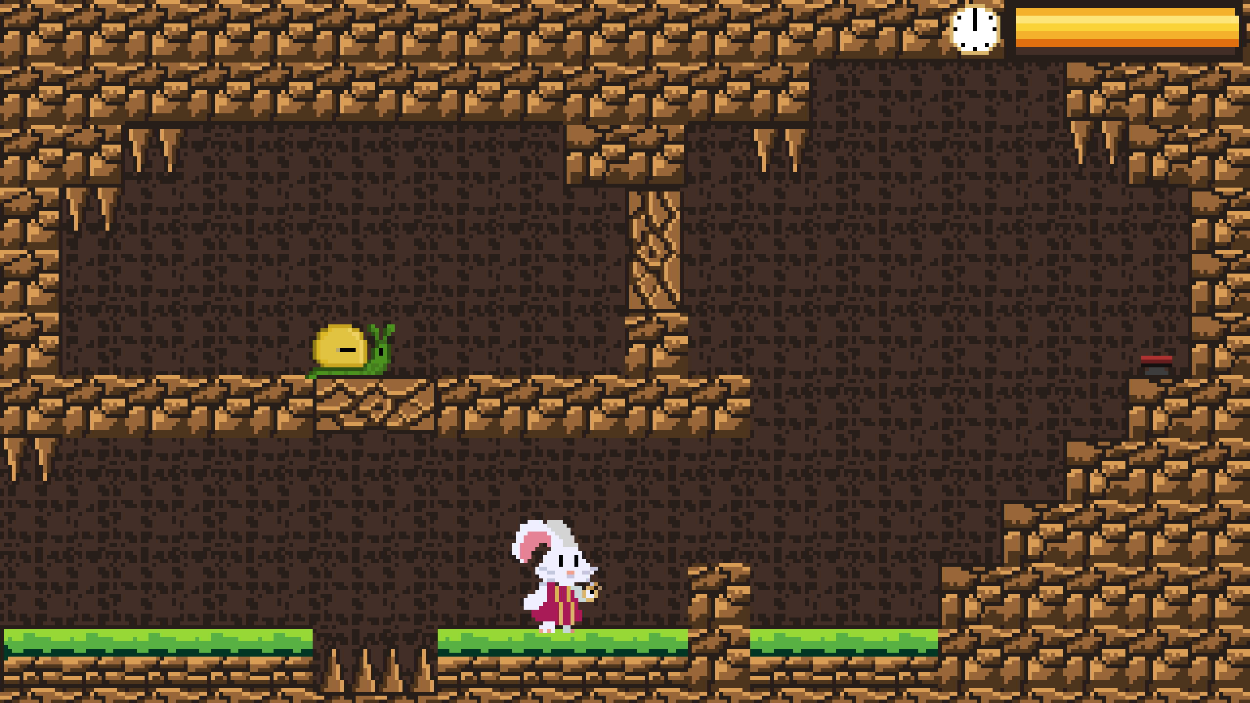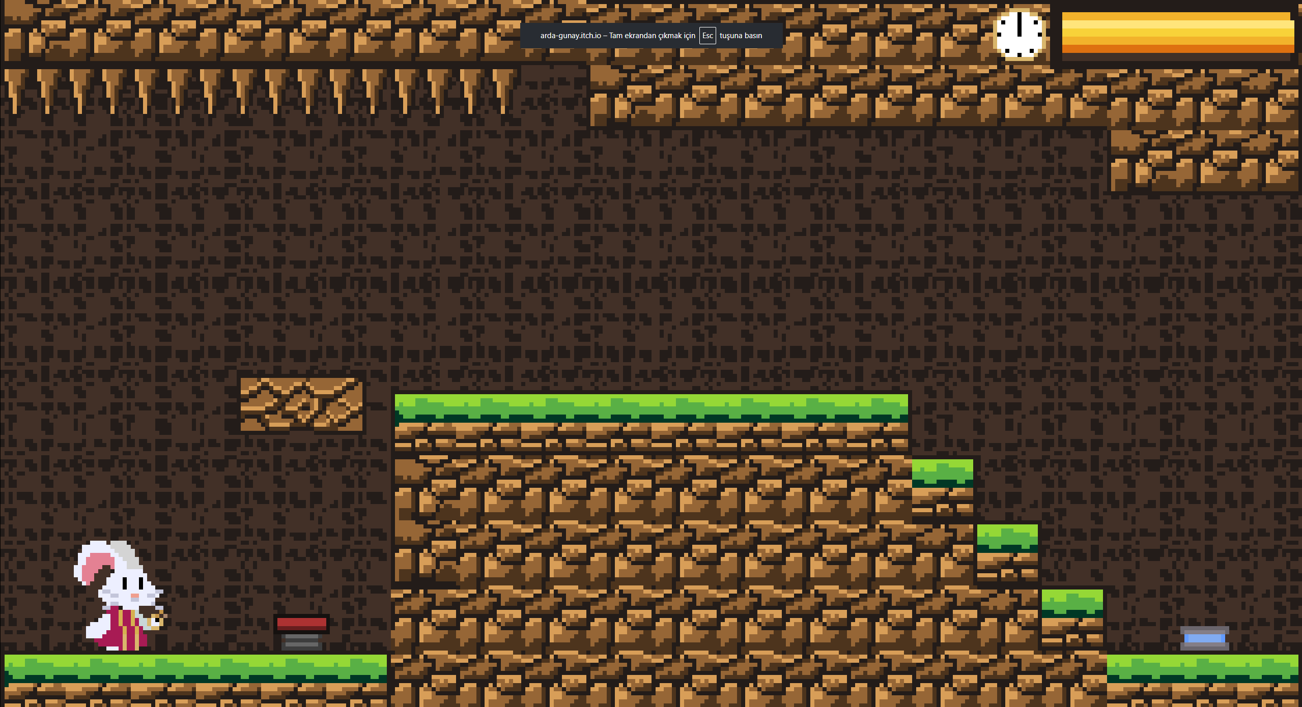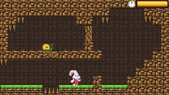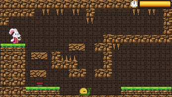 A platformer, puzzle game in which we play as a rabbit with a clock that has time rewinding abilities.